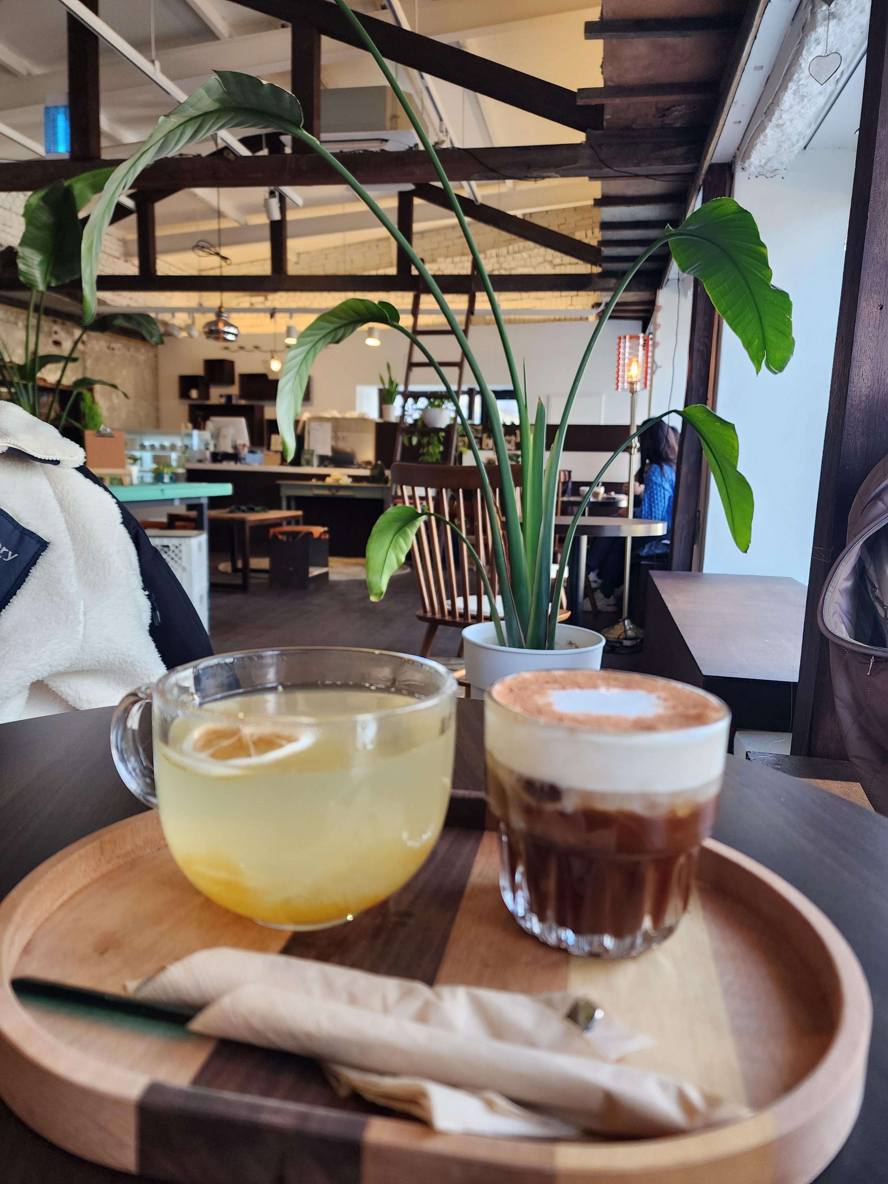 저는 가기 전에 비염약을 먹어서 아메리카노를 못 먹고 😭😭유자차를 먹었고 제 아내는 아인슈페너를 먹었어요~ 😁😁