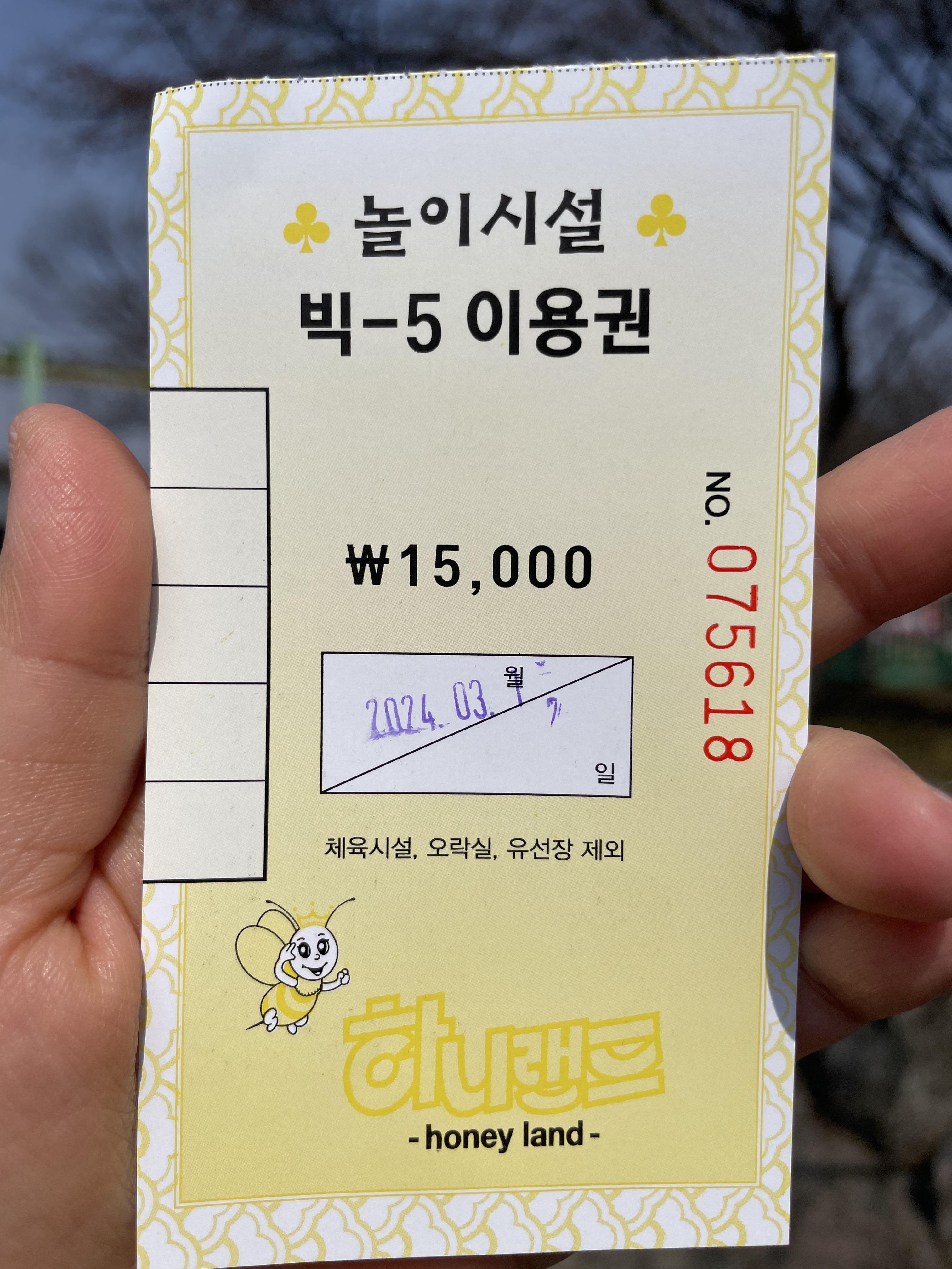 빅 5 이용권이고 옆쪽에 표에 구멍을 내시면서 확인을 하고 계셨어요!