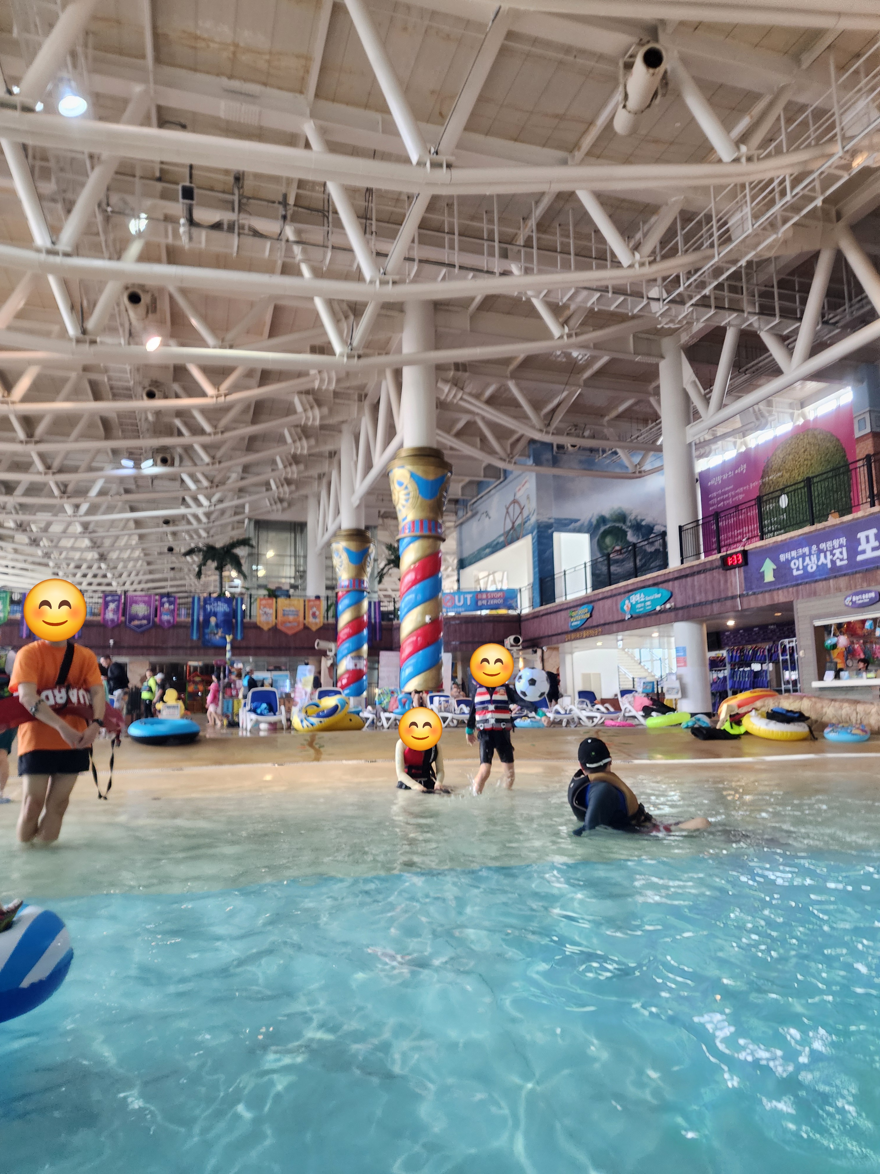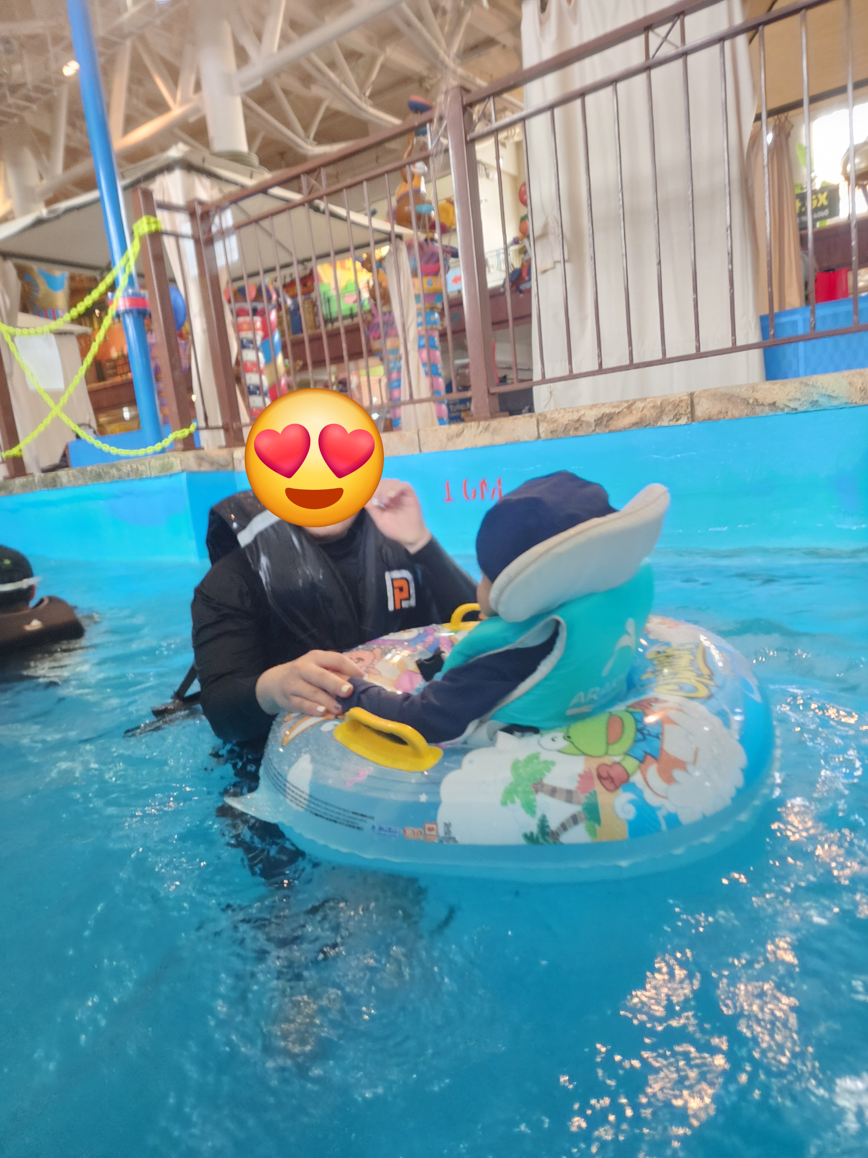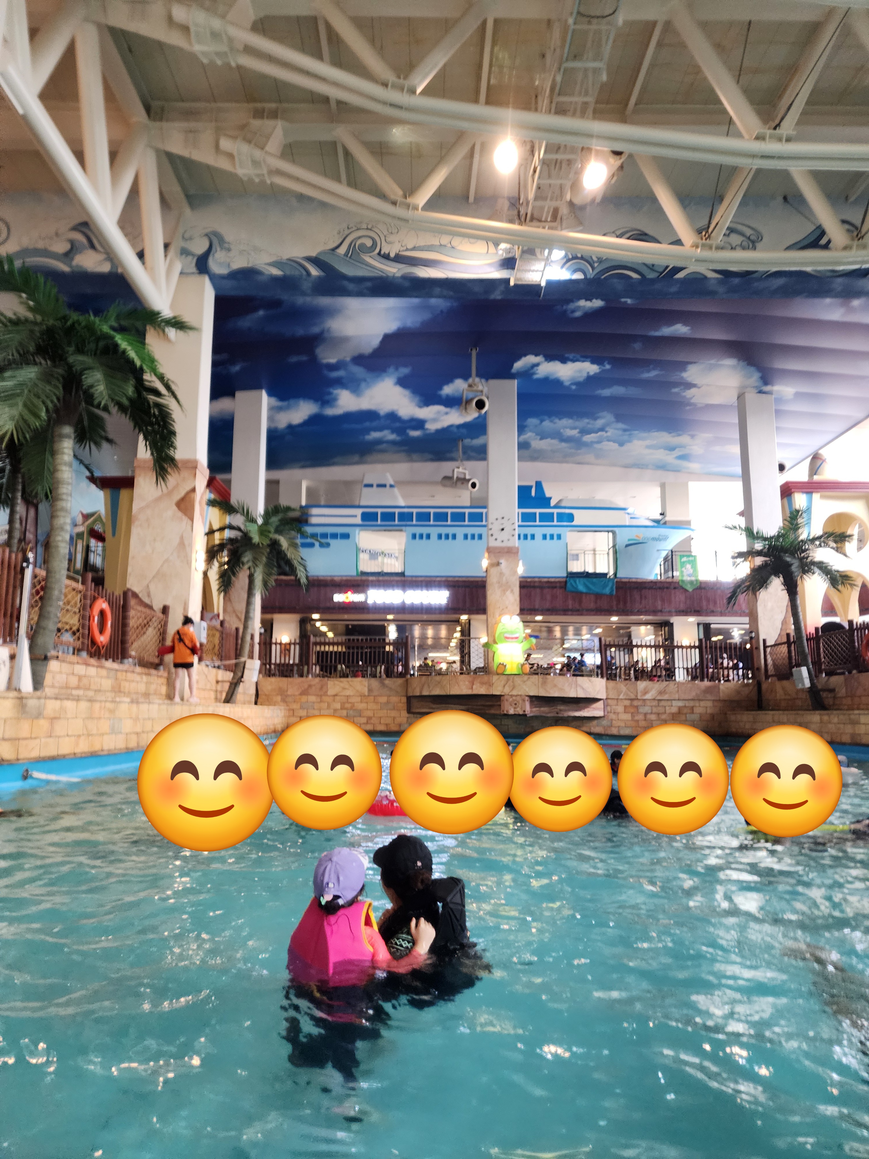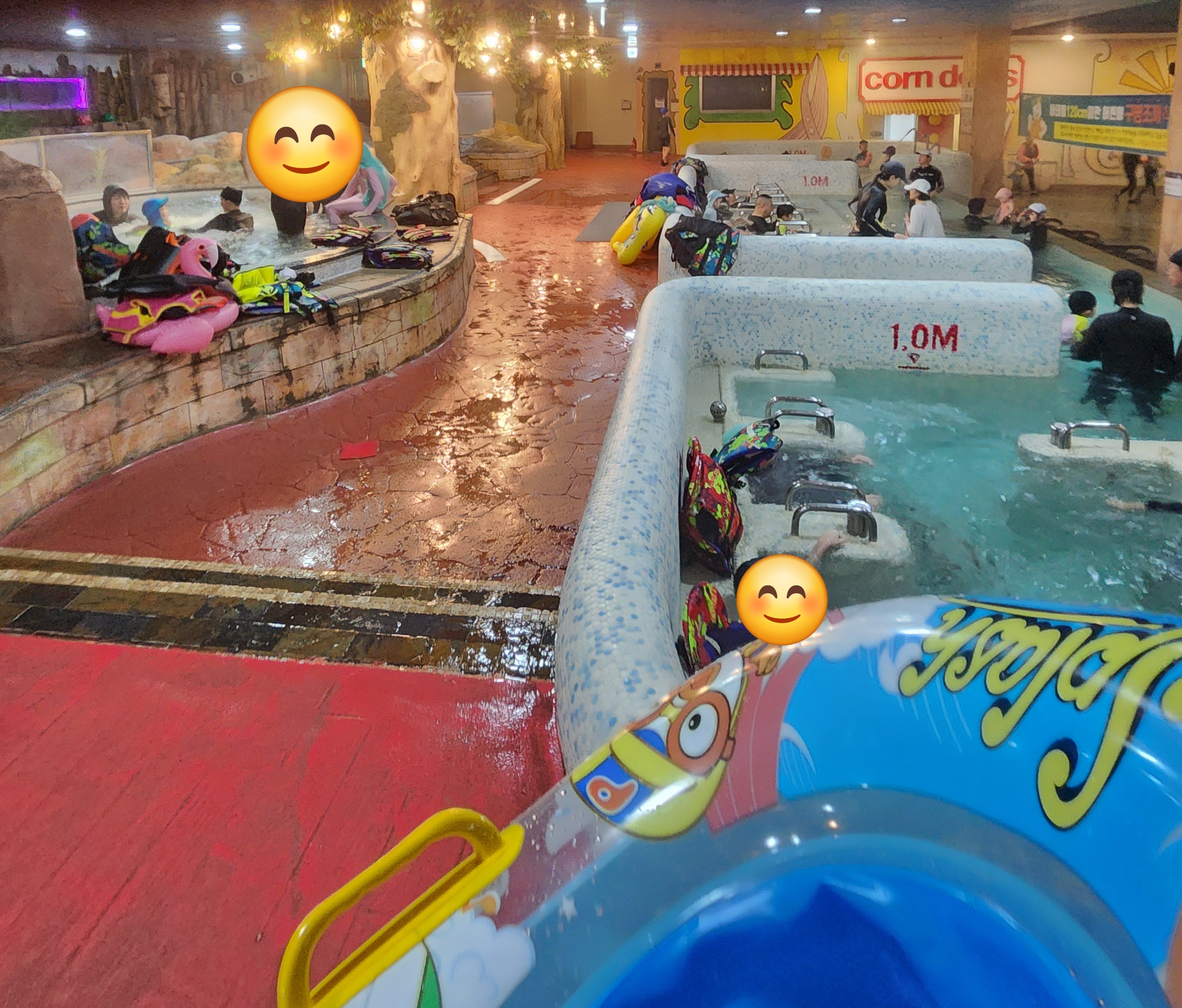 처음 입장하자마자 아이랑 아내랑 저는 우선 물부터 들어갔던 거 같아요! ㅎㅎㅎ 물론 물 들어가기 전에 따뜻한 물로 아이랑 함께 몸을 따뜻하게 한 후였지만 처음에 들어갈 땐 물이 조금 차갑다(?) 느끼긴 했습니다! 아이도 조금 추워할 수 있을까 봐 계속 관찰하며 들어갔던 거 같아요~ ㅎㅎㅎ