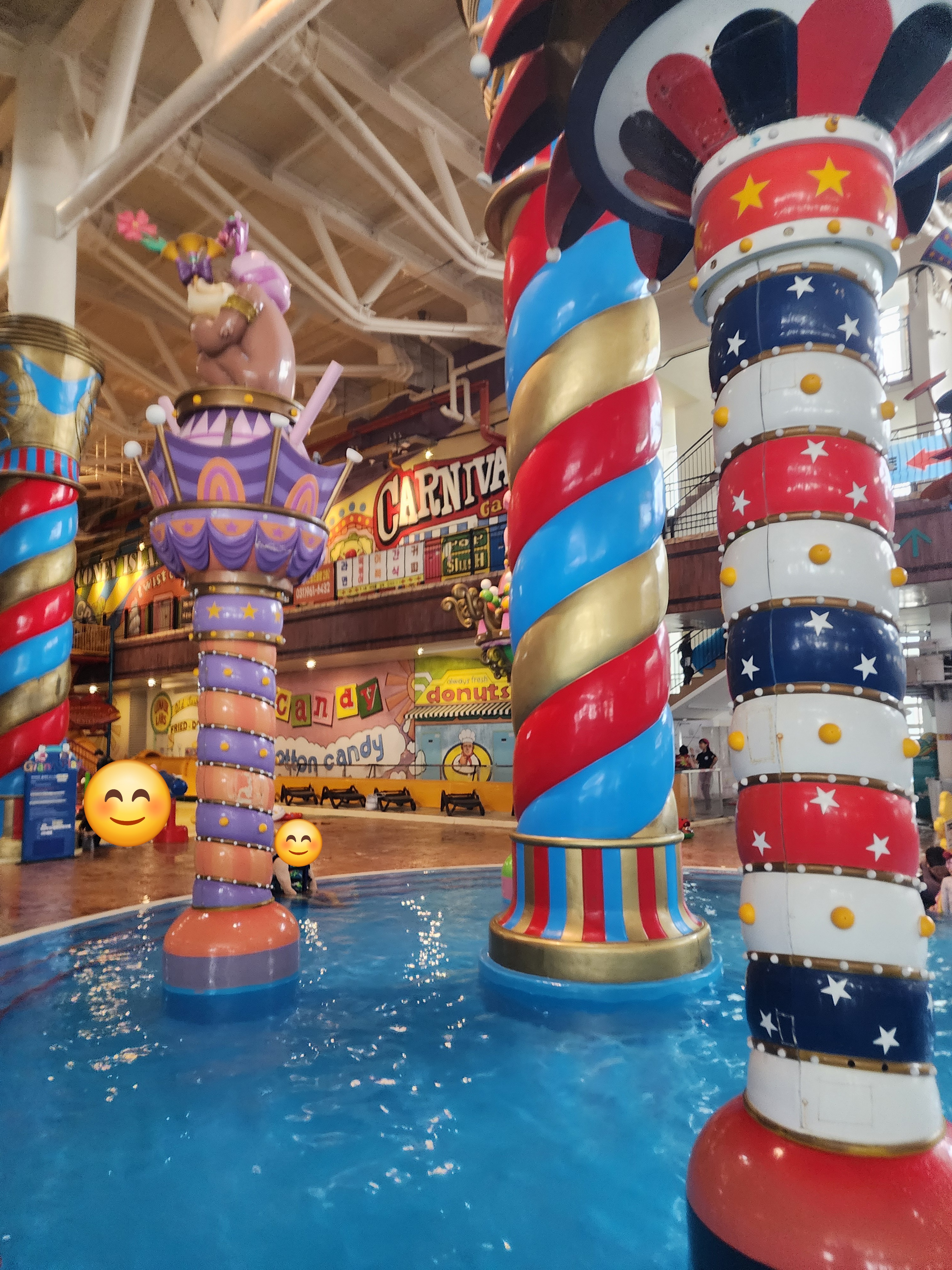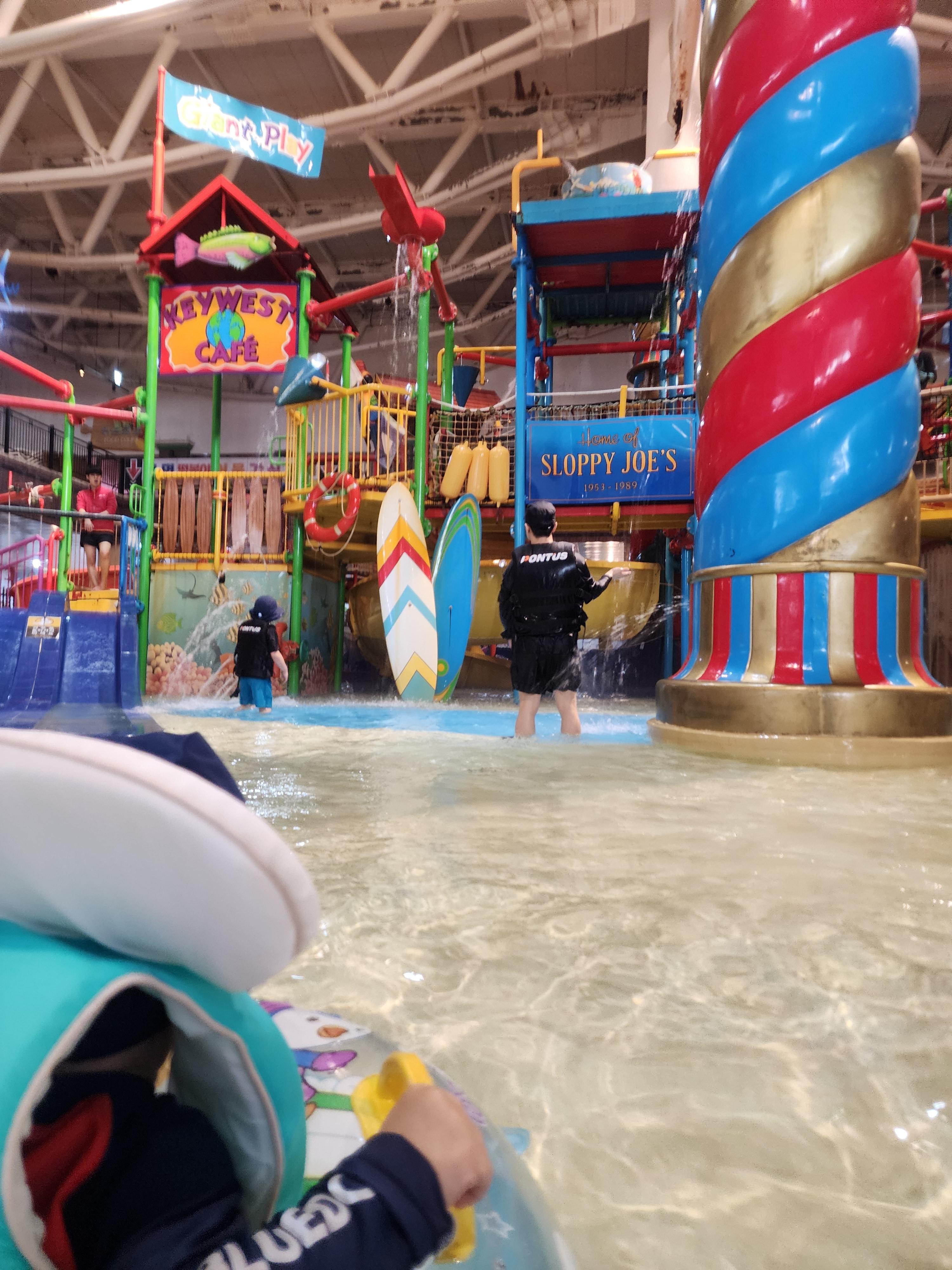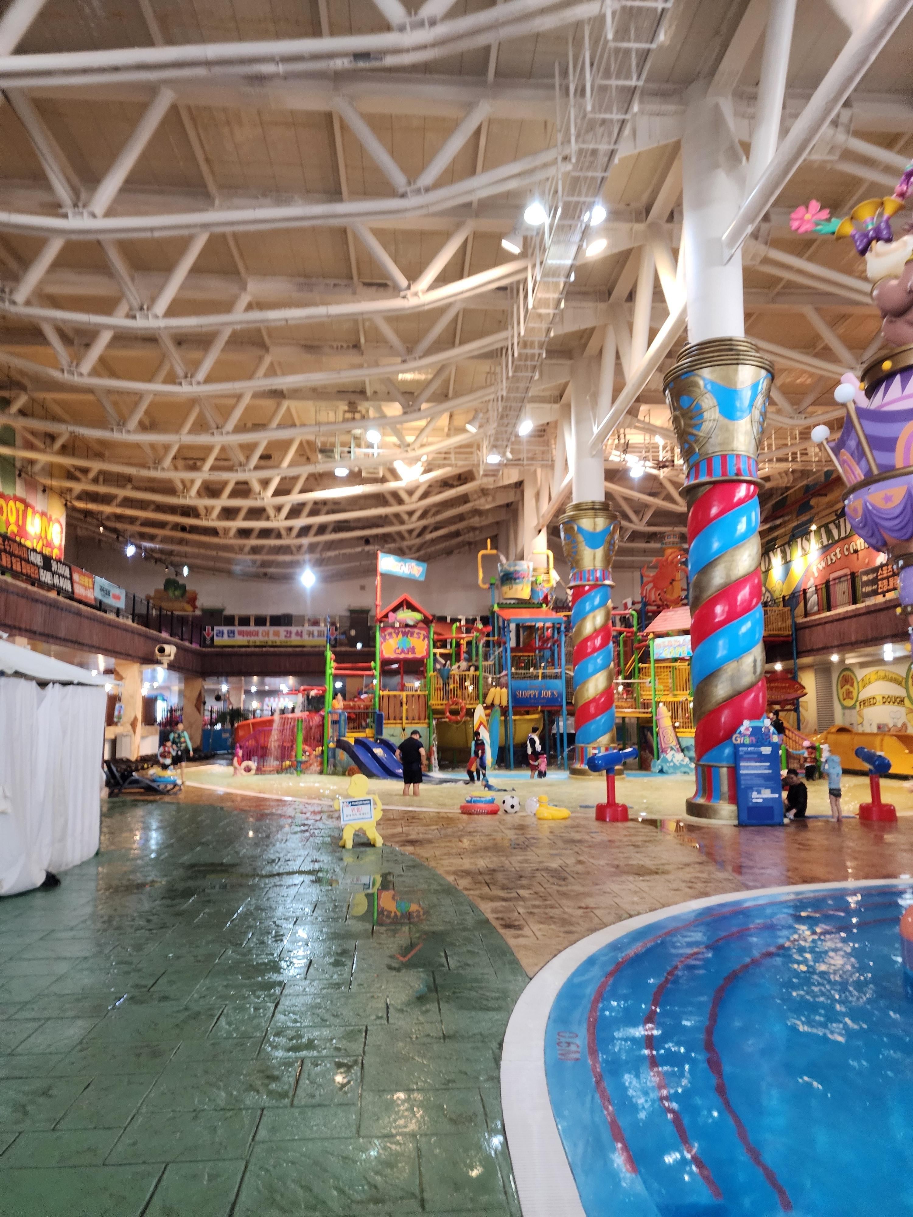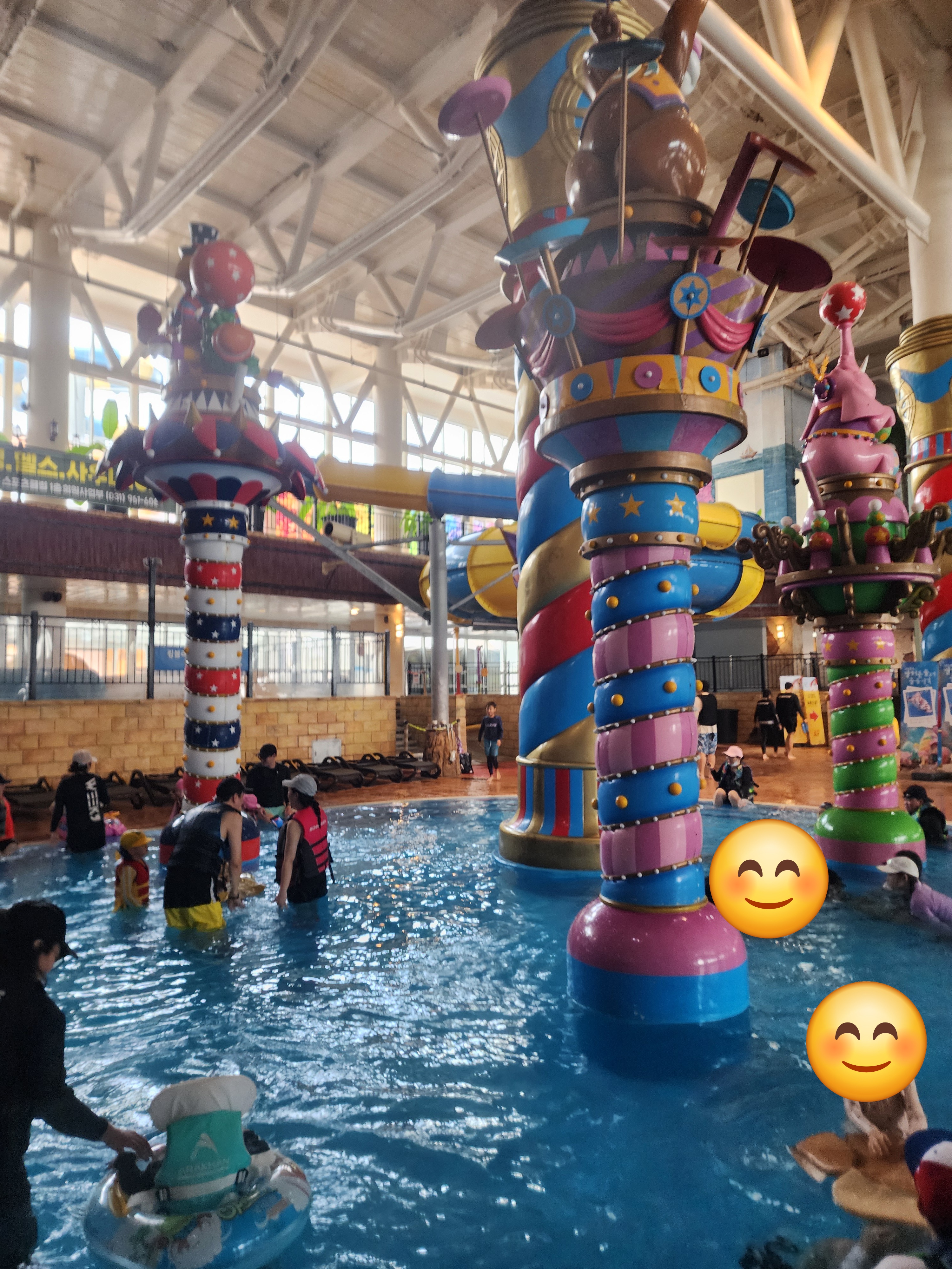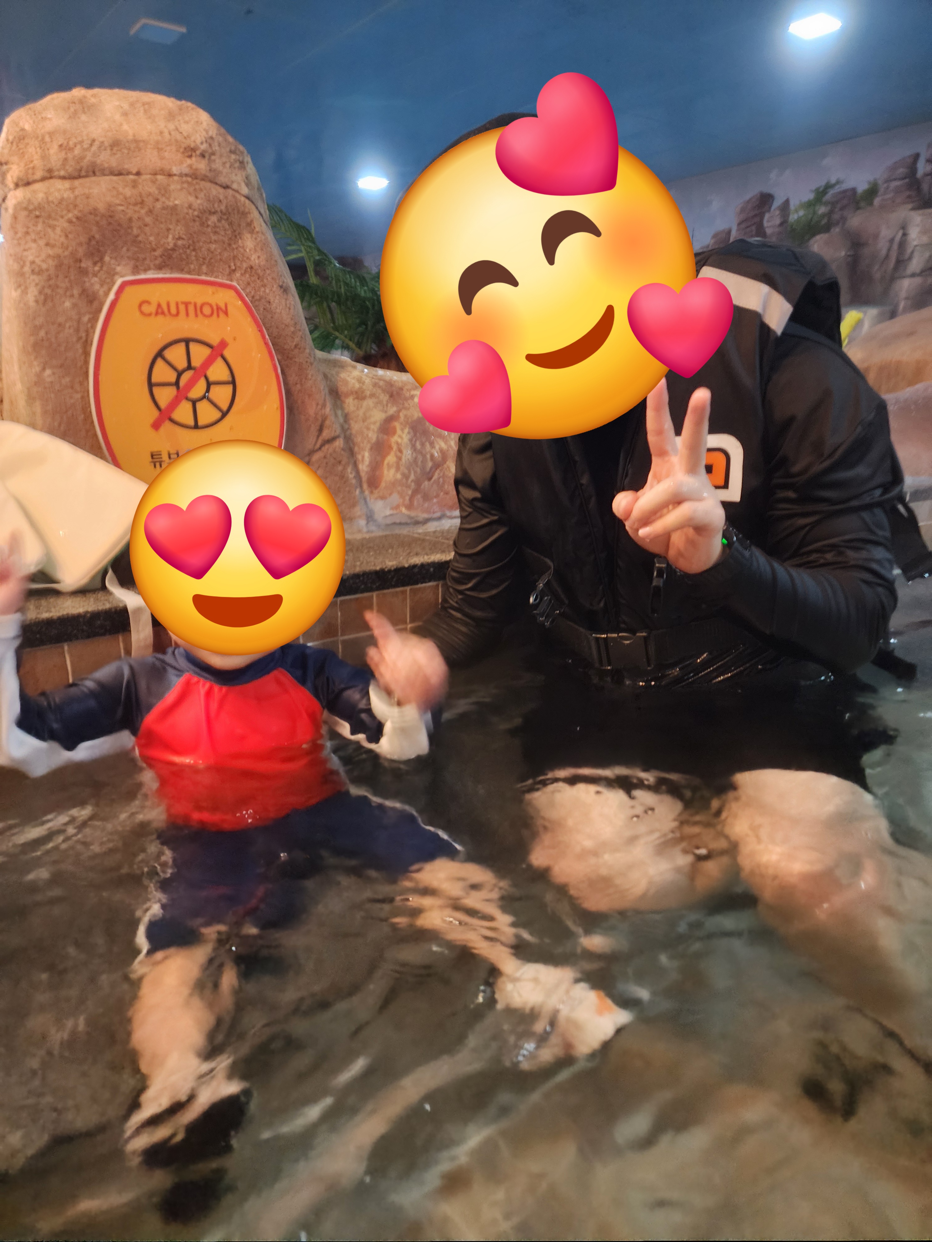 처음 입장하자마자 아이랑 아내랑 저는 우선 물부터 들어갔던 거 같아요! ㅎㅎㅎ 물론 물 들어가기 전에 따뜻한 물로 아이랑 함께 몸을 따뜻하게 한 후였지만 처음에 들어갈 땐 물이 조금 차갑다(?) 느끼긴 했습니다! 아이도 조금 추워할 수 있을까 봐 계속 관찰하며 들어갔던 거 같아요~ ㅎㅎㅎ