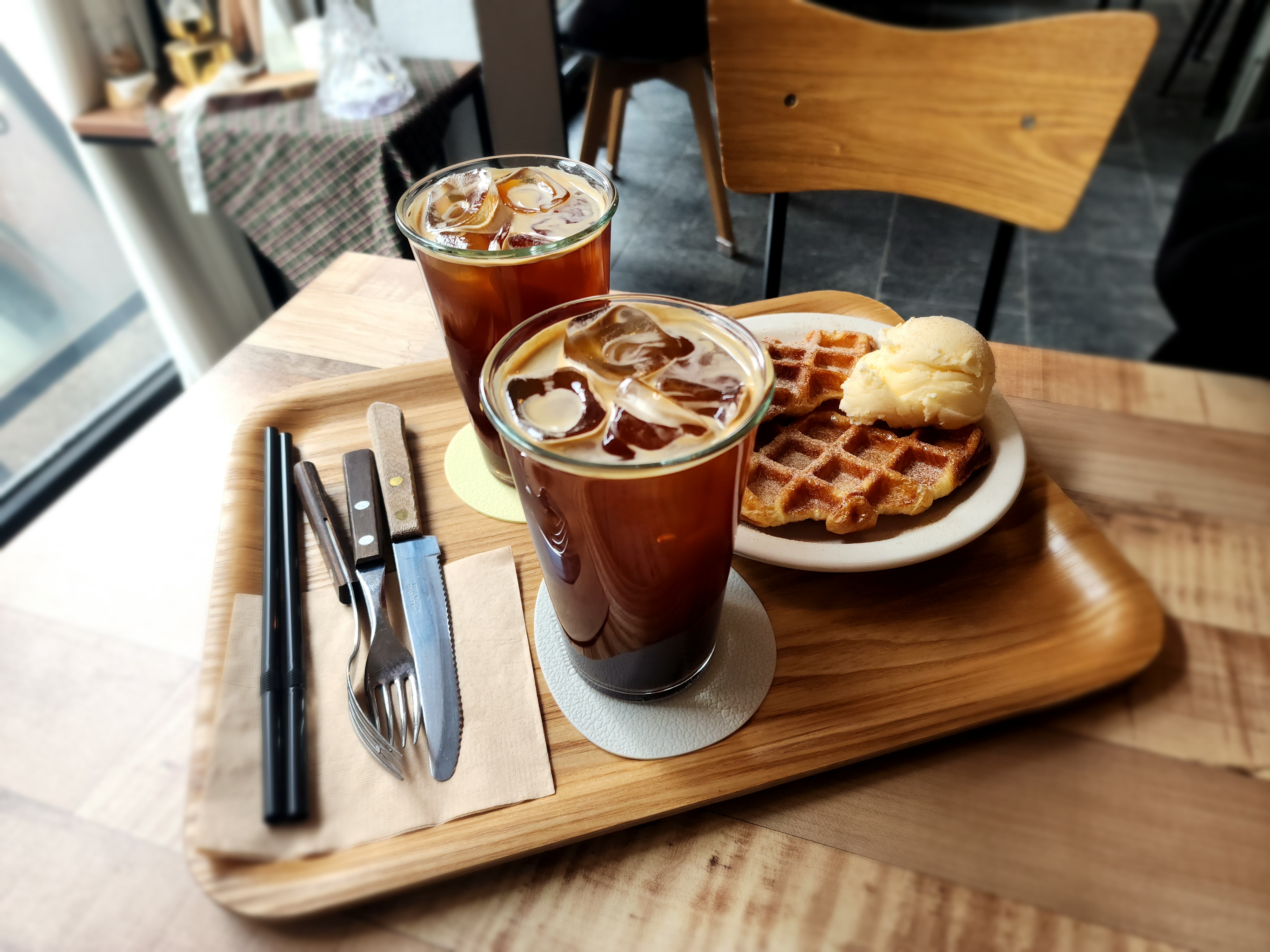 가자마자 크로플 하나와 아이스 아메리카노 두 잔을 시킨 뒤
