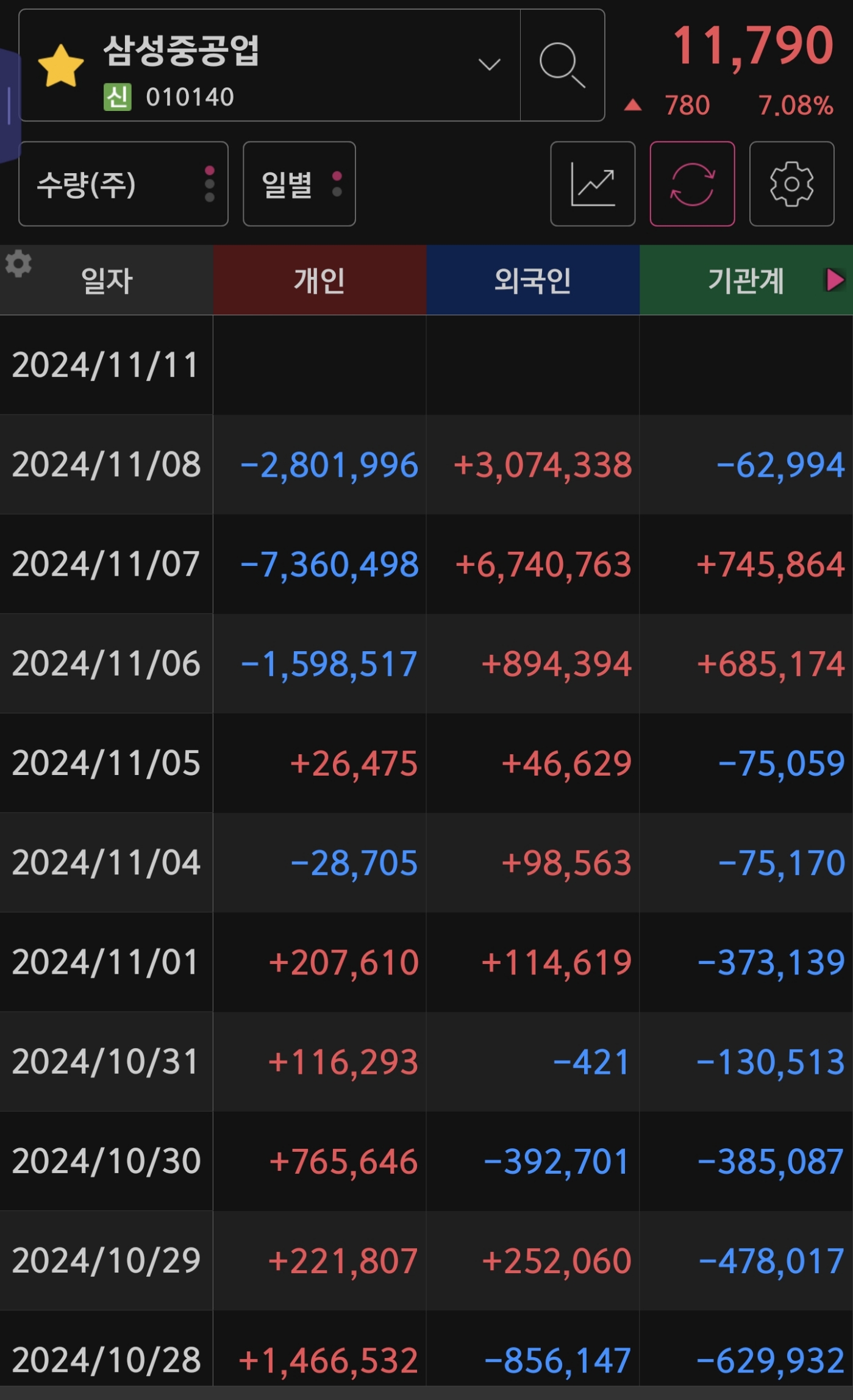 어제 종가 매매로 투자한 종목은 삼성 중공업인데요!