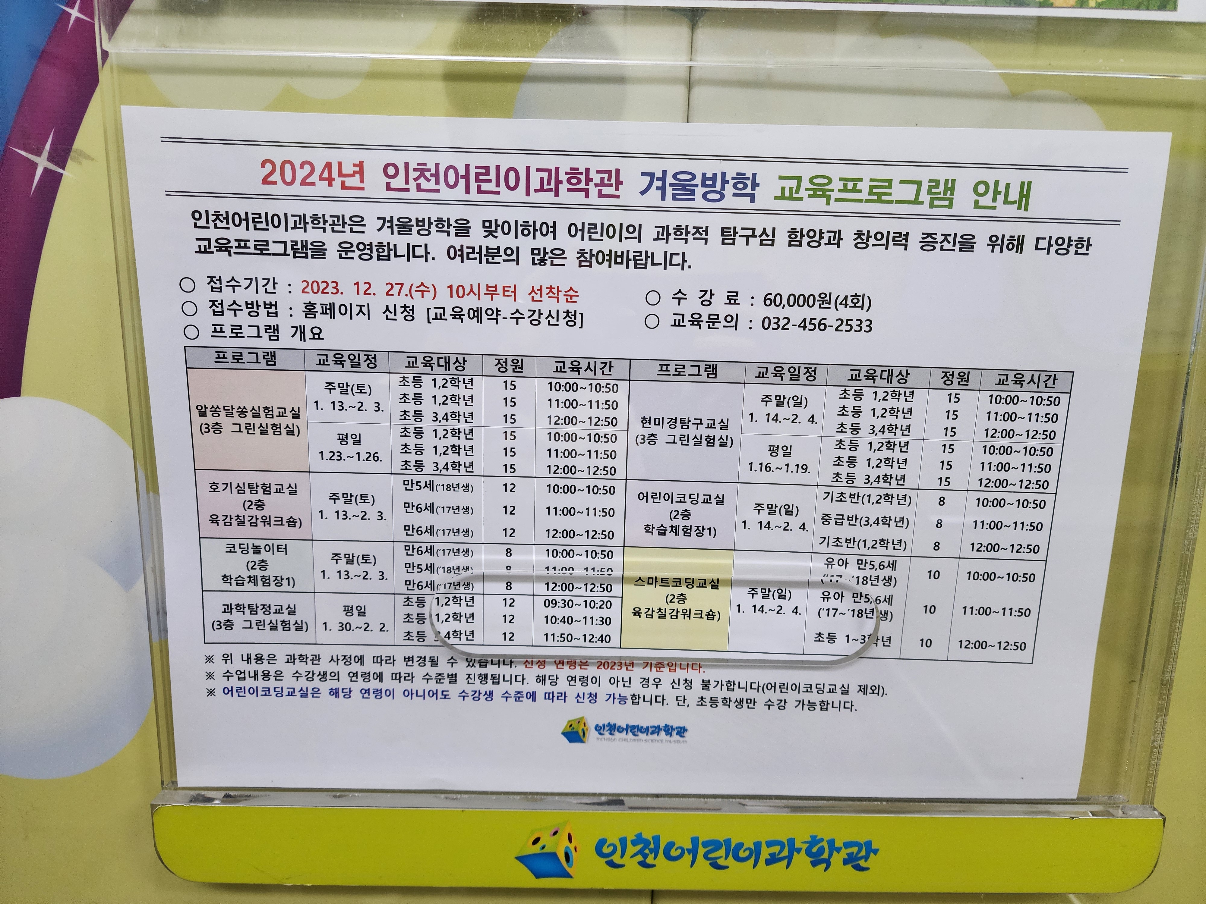 이번 주말에는 어디 나갈지 고민하다가 급으로 생각하여 인천어린이 과학관을 다녀왔는데요!